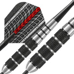 The Black Jack range is a sleek and menacing series for the advancing player. The “tungsten look” barrels feature precision black knurling, for maximum grip and optimum control. Speedline shafts and Supergrip flights complete the winning formula.