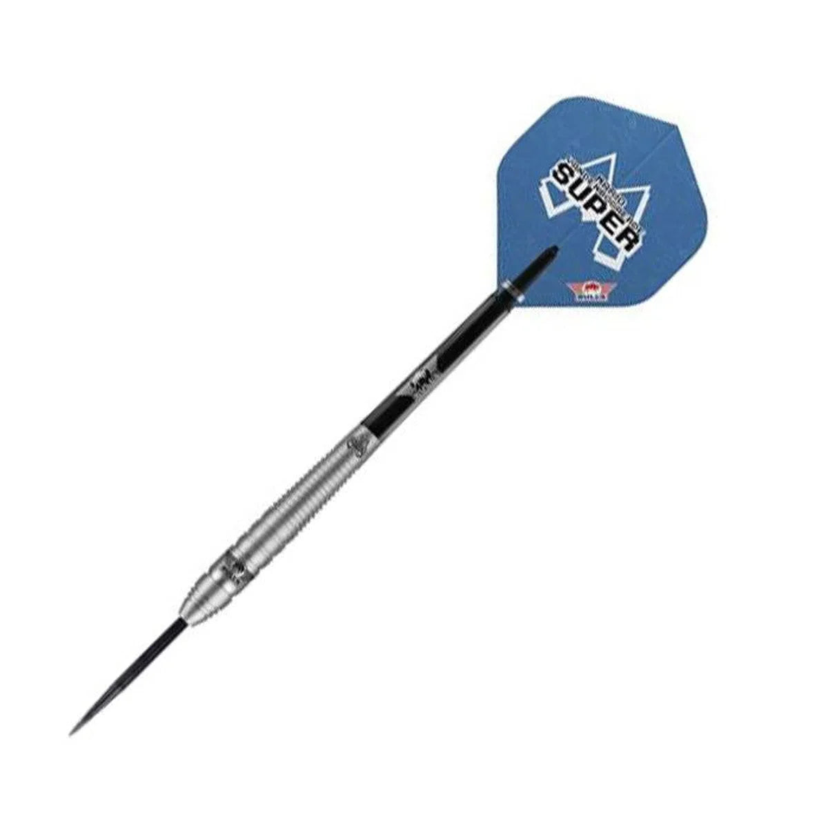The perfect choice for fans of the renowned Belgian player. These darts feature a variety of grip profiles including ringed, shark, and zero, providing superior control and accuracy on the board. The darts have a sleek silver design and each barrel features Mario Vandenbogaerde's laser-etched logo on the top.
