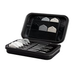The Takoma's strong EVA material is used to maintain rigidity and give protection to the darts and accessories within. Inside the wallet, a velvet layer has been added for scratch resistance and a soft feel. Darts can be stored inside the wallet fully assembled and secured with an elastic strap to prevent movement inside. The case also features two accessory pouches and thickness that prevents your flights from being crushed.