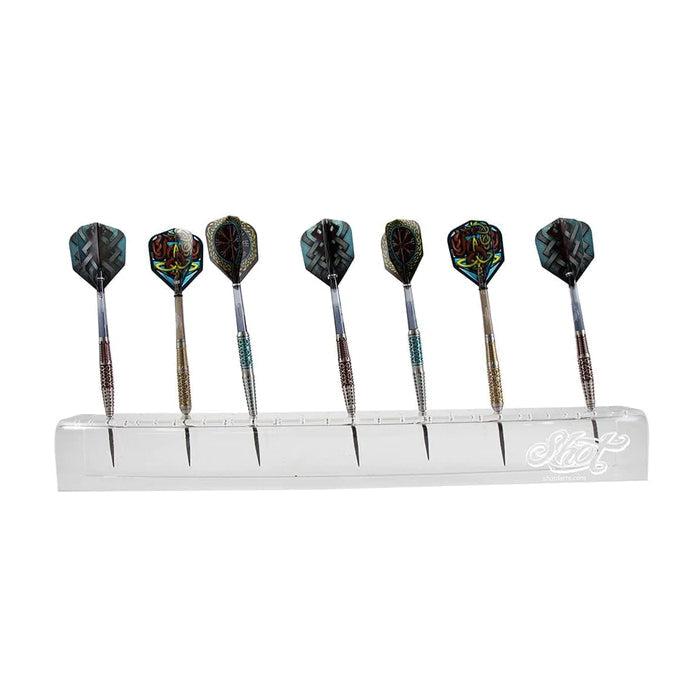 Crafted from strong acrylic and laser-etched with the iconic Shot! darts logo, this dart holder not only provides practical storage, but also adds a touch of style to any darts setup. Plus, with its compatibility for both soft and steel tip darts, this holder is perfect for players of all skill levels and preferences.
