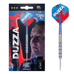 Detailed radial grooves run along the straight barrel with 4 vibrant blue ring sections to ensure 'Duzza's influence is firmly stamped on this dart.