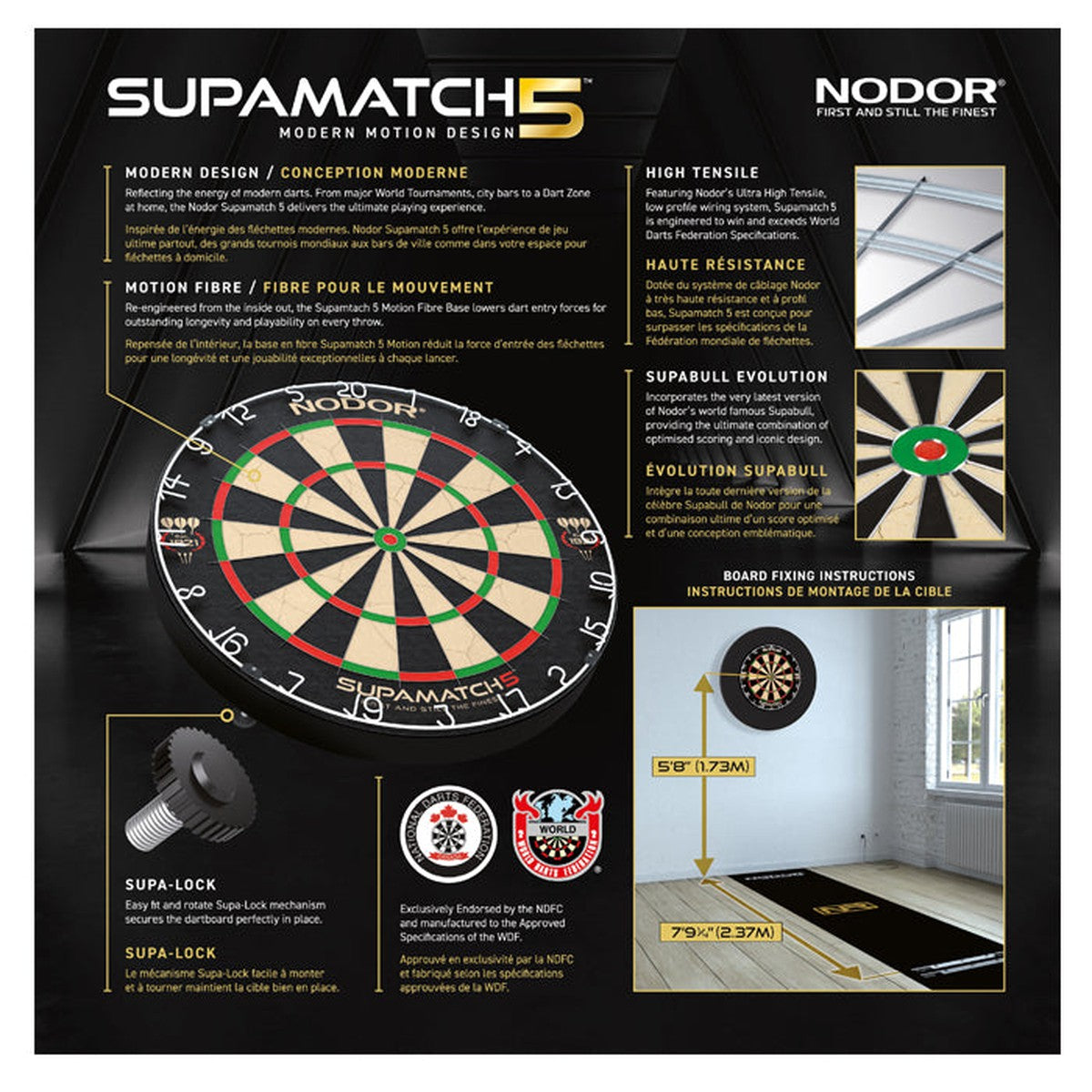 Featuring Nodor’s ultra-high tensile, low profile wiring system, SUPAMATCH 5 is engineered to win and exceeds World Darts Federation Specifications