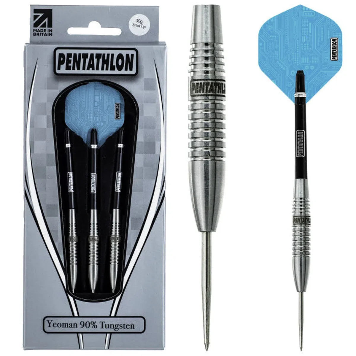 Pentathlon Yeoman Steel Tip Darts Contains: 3 Darts, 3 Dart Flights and 3 Dart Shafts.