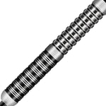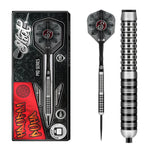 Haupai updated his match dart with a new design: he's now using a straighter barrel for tighter grouping on the dartboard. This barrel design has a softer style grip with a super easy release. A classic, durable ring grip blends with a multi-axial squared style tail with added fresh micro V cuts to enhance the grip.