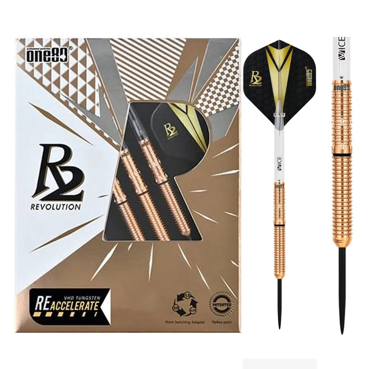 One80 Re-accelerate 90% Tungsten Steel Tip Darts: 3 Darts, 3 Dart Flights and 6 Dart Shafts, 1 x Replacement Tool