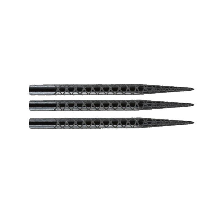 Diamond Pro Points, uniquely designs point laser etched to provide added grip to both the throwers finger and to secure the dart once it hits the dartboard.