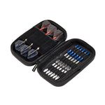 This foam interior case holds two fully loaded set of darts and has lots of storage for a complete range of spares and accessories with special compartments for flights shafts, tips and accessories