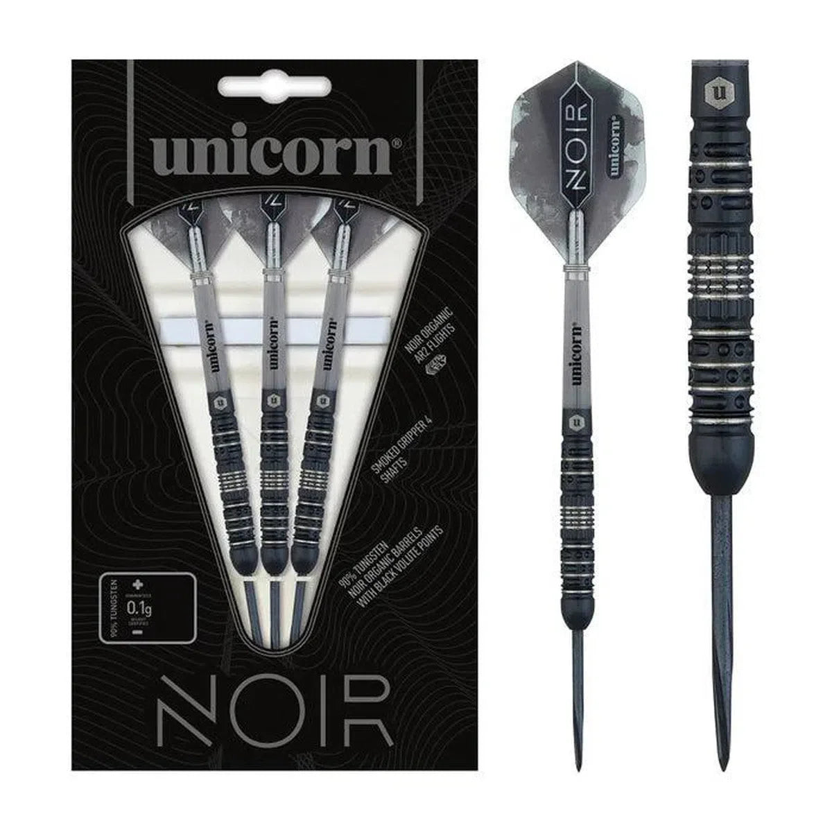 The Unicorn Noir range of darts optimises class and style. Precision engineered black titanium nitride coated 90% Tungsten barrels with the Unicorn hallmark laser engraved.