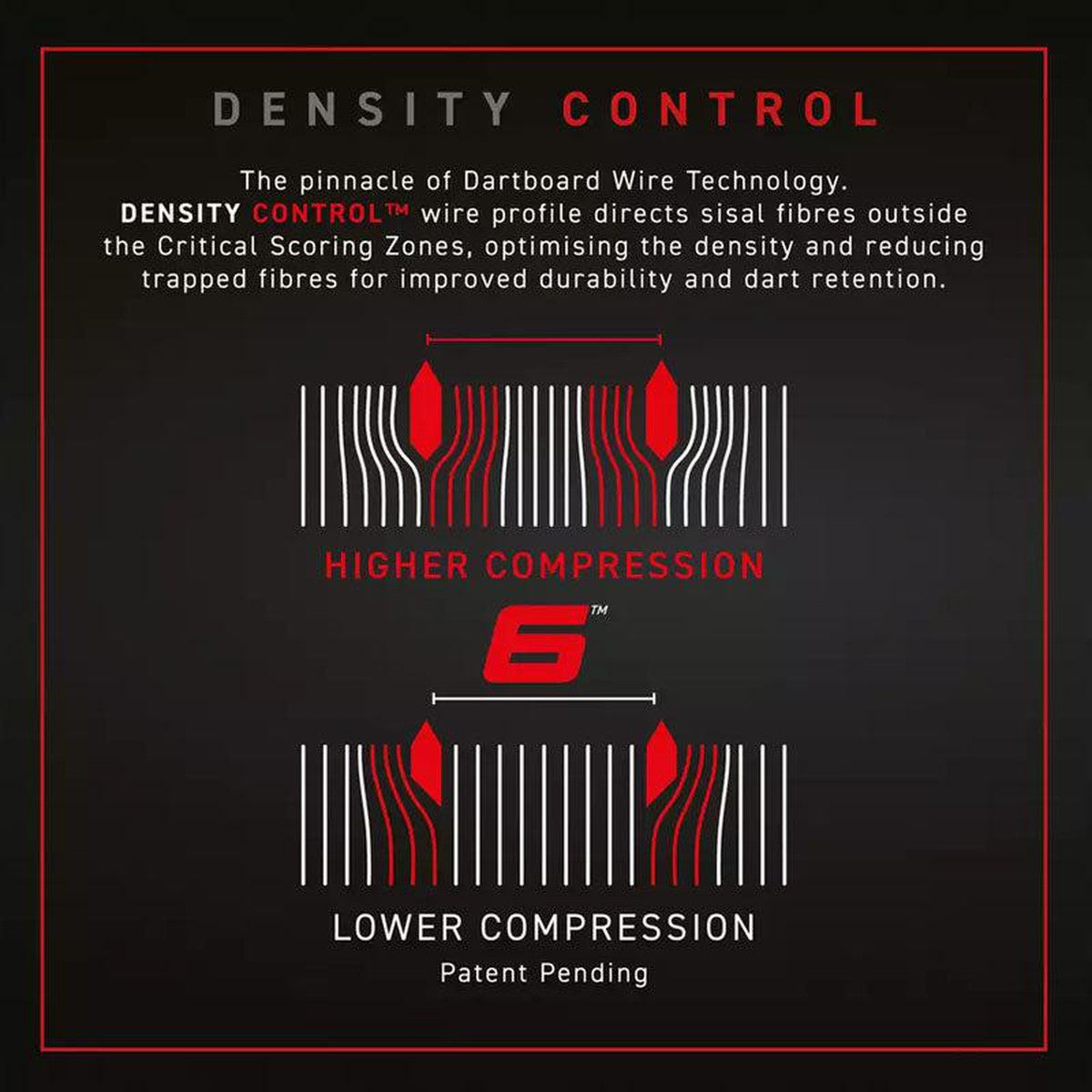 The ultra-thin 60° angled wire deflects darts into the scoring area for absolute minimal bounce outs. The fully hardened bullseye and outer bull, both featuring ‘Density Control™’ wire, are now 25% thinner.