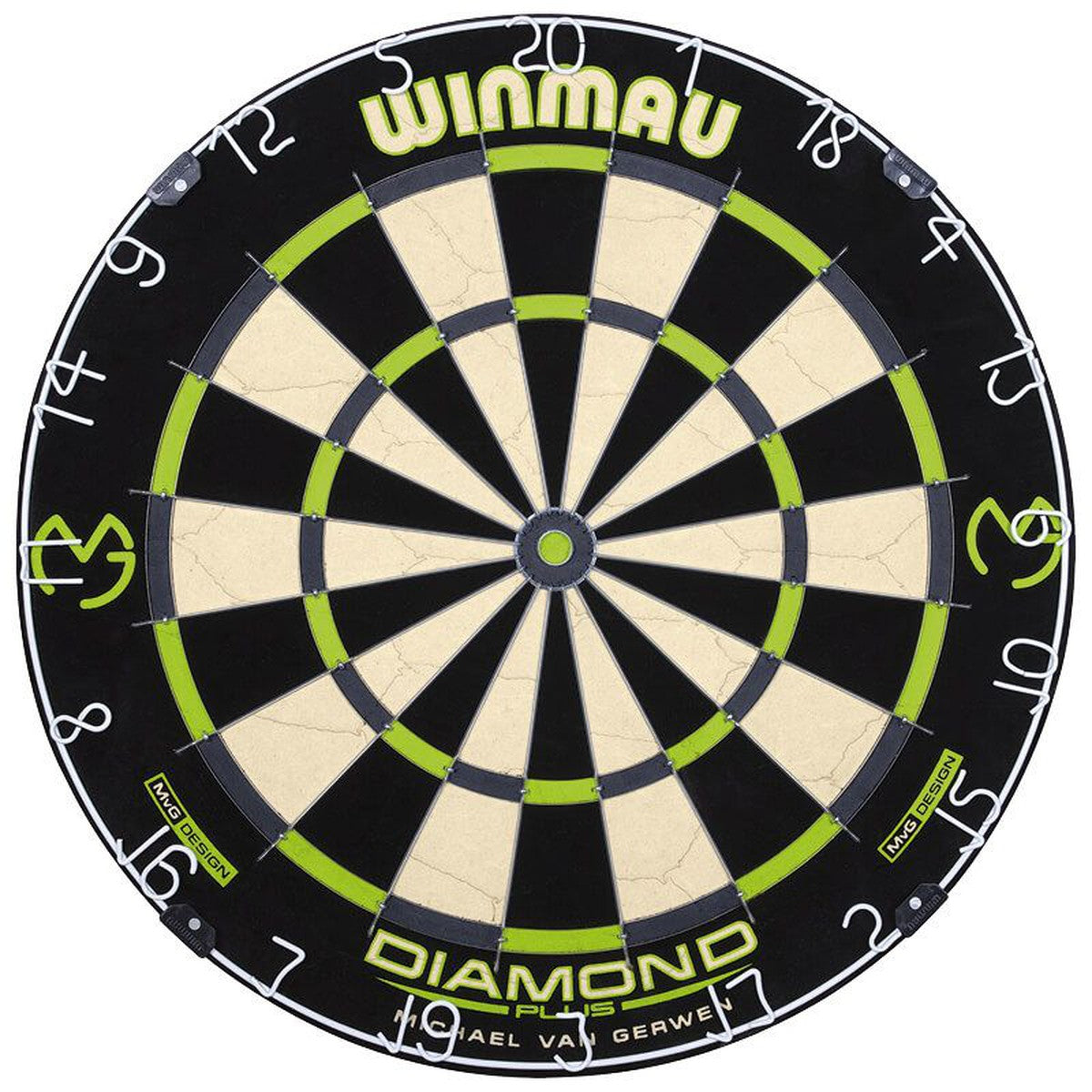 Winmau MvG Diamond Edition Dartboard - Geared for the modern game at the most advanced level, this refined triangular wire MvG Diamond Plus gives you dramatically improved durability and playability featuring Winmau’s high tensile Dynamic Sector Wiring. Made to World Darts Federation standards, this tournament approved dartboard is finished with hi-visibility scoring zones and anti-glare number ring for world class performance.
