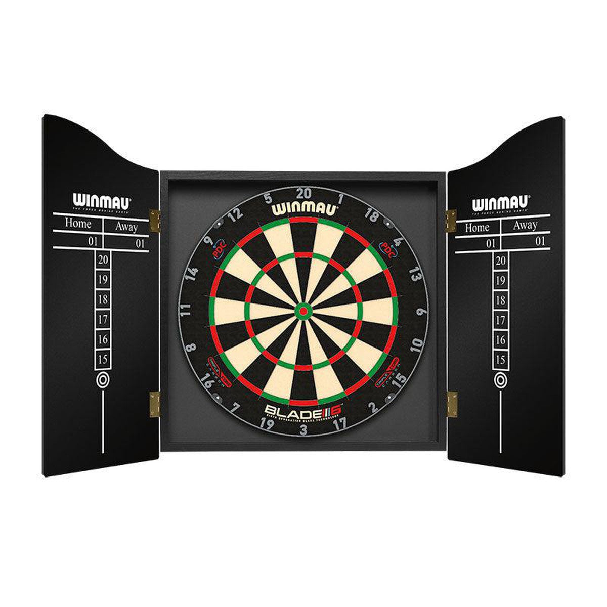 Winmau Plain Beech effect dartboard cabinet. Suitable for all Winmau bristle dartboards. Feature Home and Away easy wipe scoring panels.All cabinets are supplied in full colour lithographic cartons