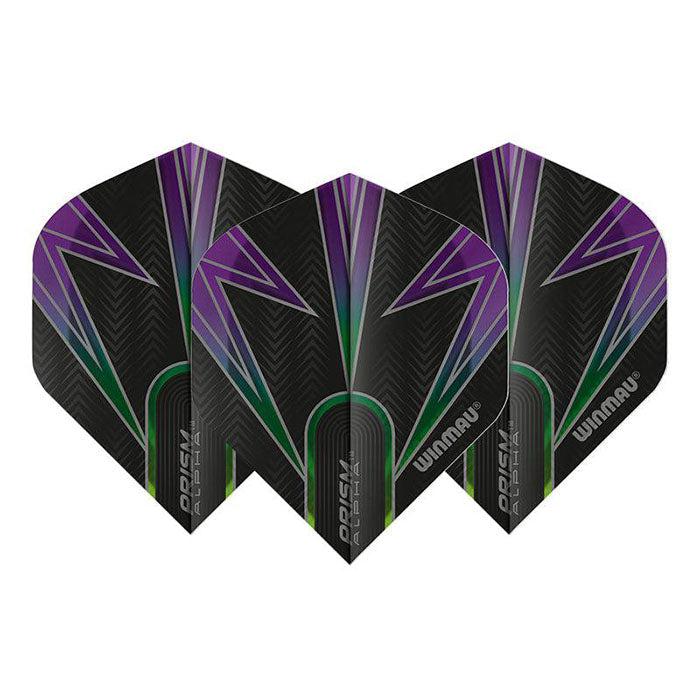Winmau Prism Alpha Black & Purple & Green Extra Thick Dart Flights - 1 set per pack (3 flights in total). Advanced Airflow.