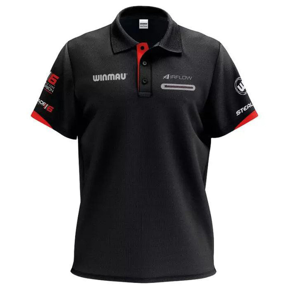 Winmau Pro-Line Shirt Blade 6 - Black - Light-weight technical polo incorporates stunning high-visibility contrast fabric, with three button placket and a laser-cut reinforced zip pocket. Ultra-modern with innovative temperature and moisture management materials. Inspired design, features Winmau Pro-Logos - the world's leading dart shirt.