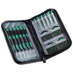 Winmau Urban Slim Darts Case Black. Robust slim single fold darts case. Holds 2 sets of darts with shafts, 11 compartments. Dimensions 18cm x 10.7cm x 2.8cm.