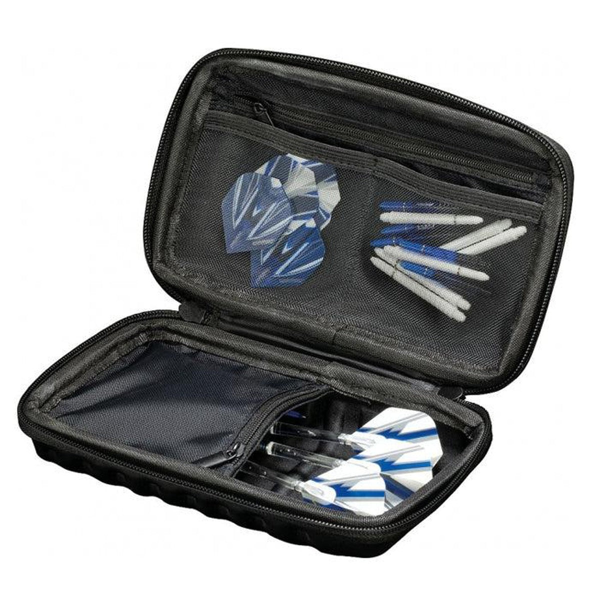 Winmau Vincent van der Voort Tour Edition Black Case. Ultra-modern, robust extra-large dart case. Holds 2 sets of darts fully assembled, 5 compartments. Dimensions: 19.5cm x 12.5cm x 5cm.