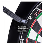 With Magnetic attachment, the Corona lighting system is the new and more convenient way of lighting your dartboard. The feet of the Corona are magnetic, allowing them to attach to the steel ring of the Dartboard.